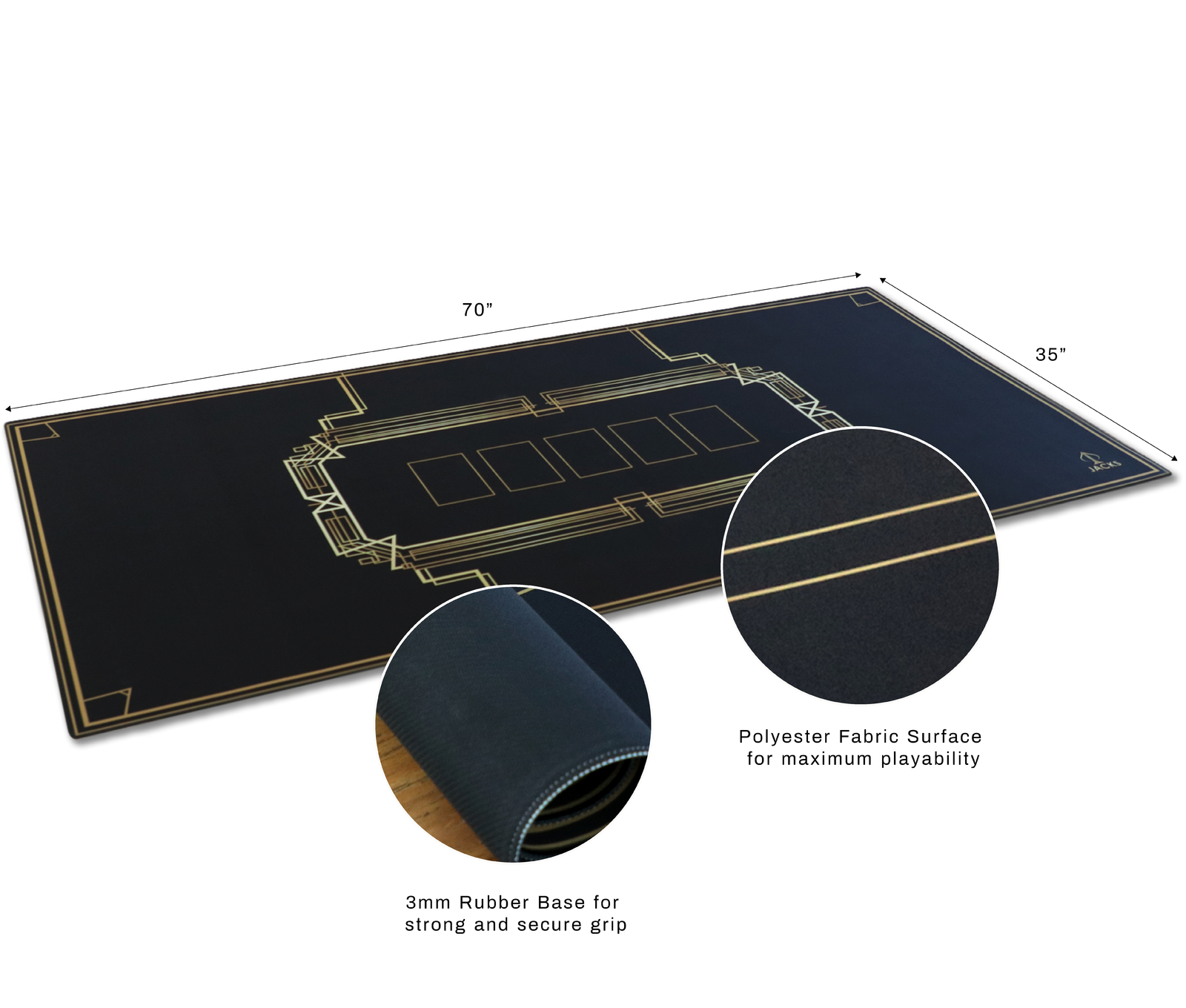 With a large surface, 70" x 35", the Club Noir mat comfortably accomodates 6-10 players.