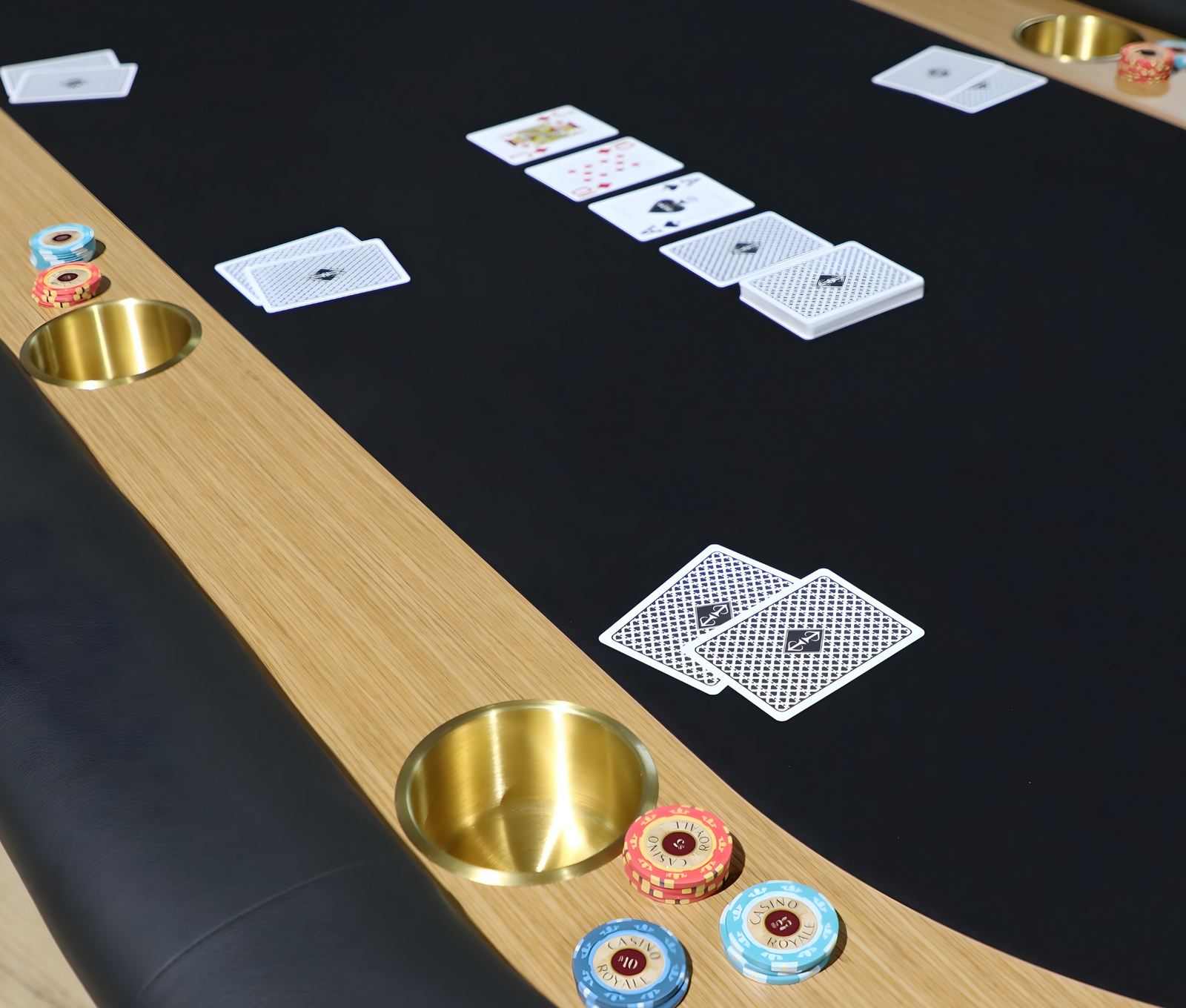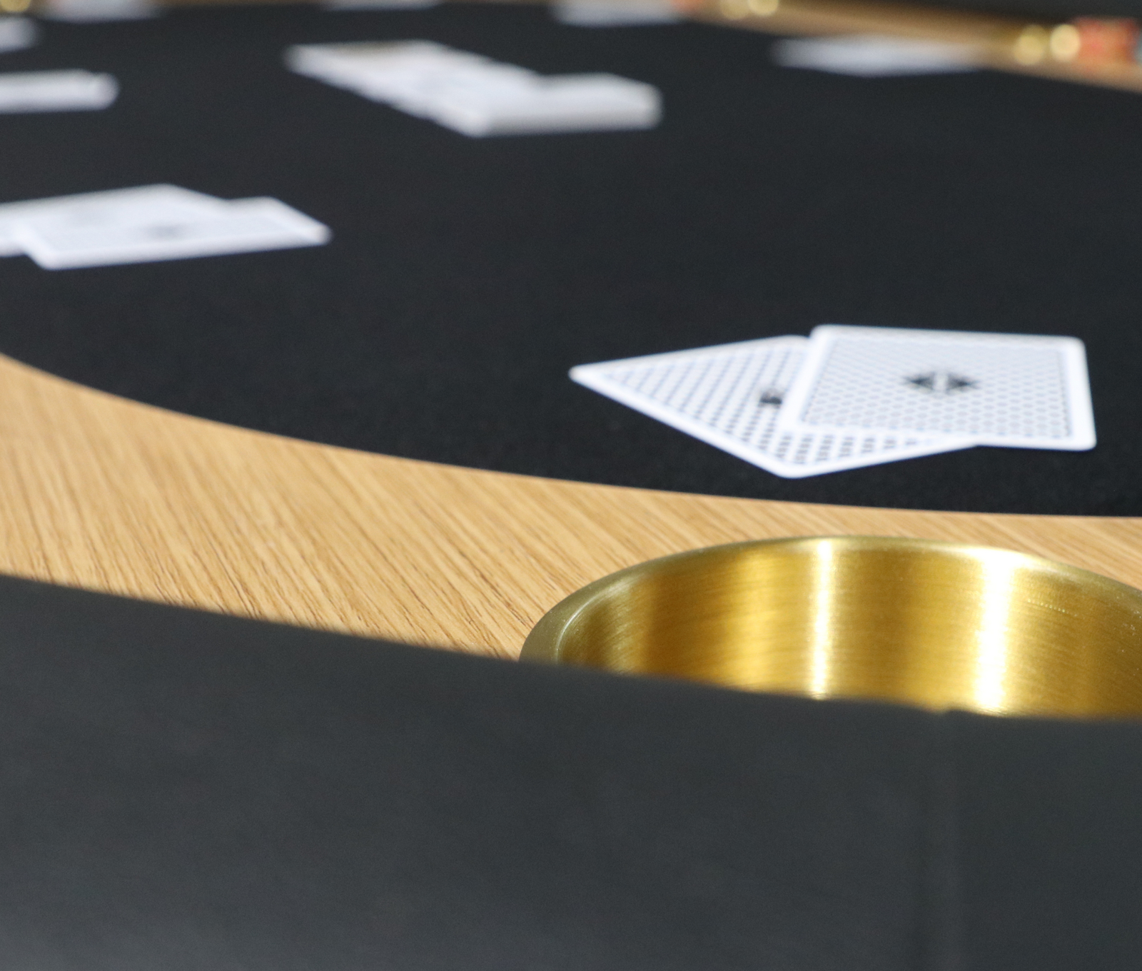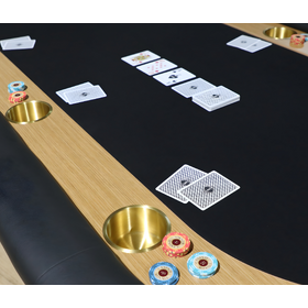 With a stylish wooden racetrack, black leather armrest and brass cupholders, the Ivey PRO is an eye catching table sure to impress your guests.