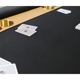 The casino grade felt in plain Black in our most premium quality, perfect for easy card glide and fully waterproof in the event of a spillage (liquid bubbles on surface).