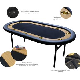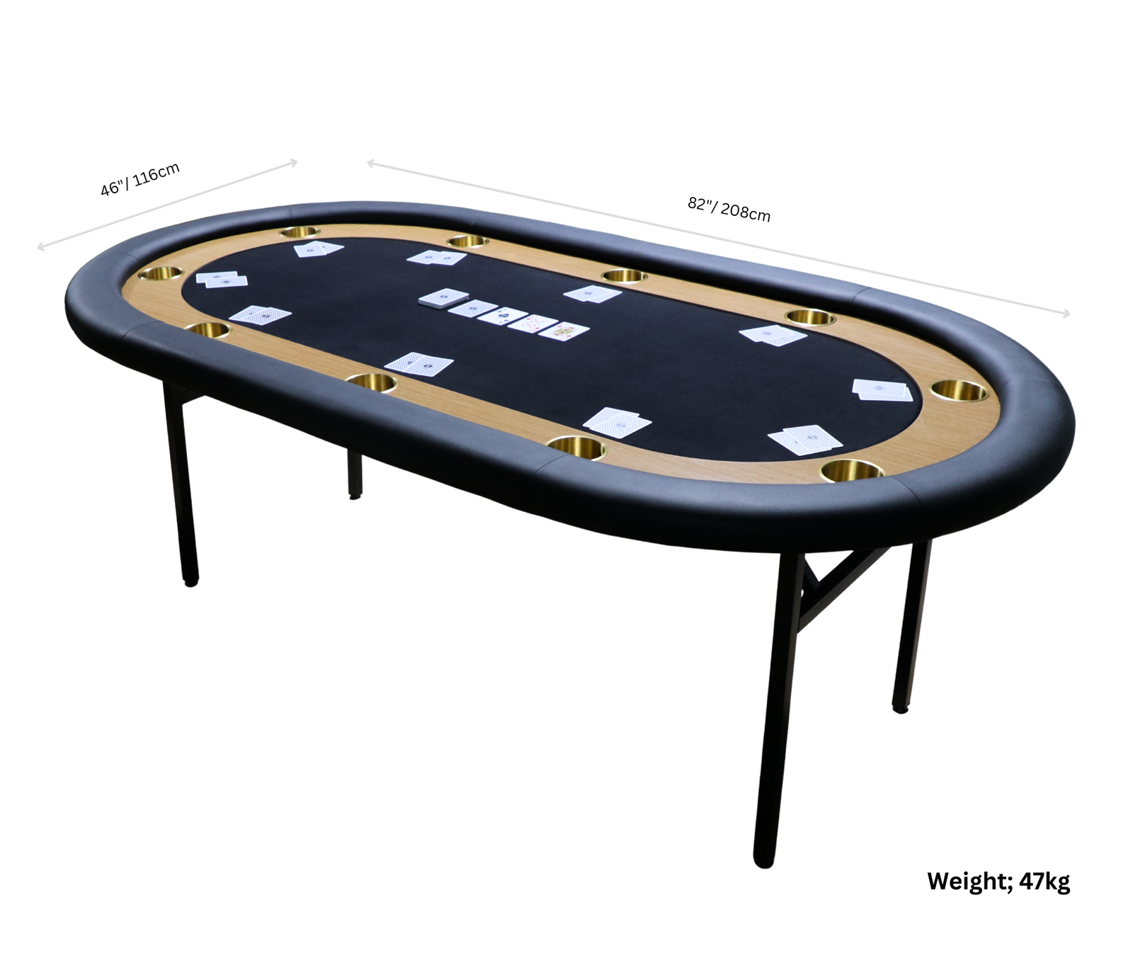 82" 10 Seater Poker Table - Wooden Racetrack - Black