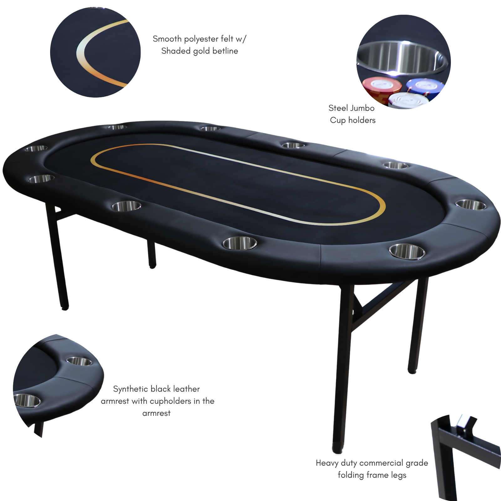 The felt design features a shaded gold betline area and jet black felt for a stylish backdrop to your game.