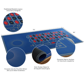 With a large surface, 70" x 35" (178cm x 89cm), the Signature Roulette mat comfortably accomodates 6-8 players around the full area and is designed to fit most rectangular dining tables.